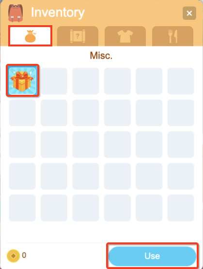 Pick “Misc”, choose the “starter pack” and click “Use” to get your rewards.
